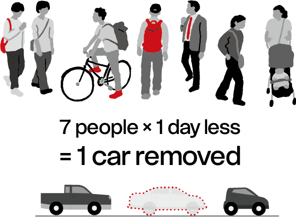 When seven people each reduce their driving by just one day per week, it’s the equivalent of taking one car off the road entirely.